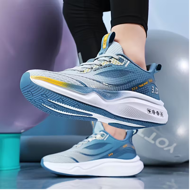 These unisex lightweight running shoes are made for both men and women who love comfort and style. The soft and breathable mesh upper keeps your feet cool and fresh during runs, workouts, or daily walks. The light EVA midsole offers great cushioning and support, helping reduce foot pressure with every step. The strong MD+TPR outsole gives a firm grip and long-lasting wear on different surfaces. With an easy lace-up design and sporty look, these shoes are perfect for gym sessions, jogging, or casual outings. Enjoy a smooth and comfortable experience every day with these all-purpose sports running shoes.